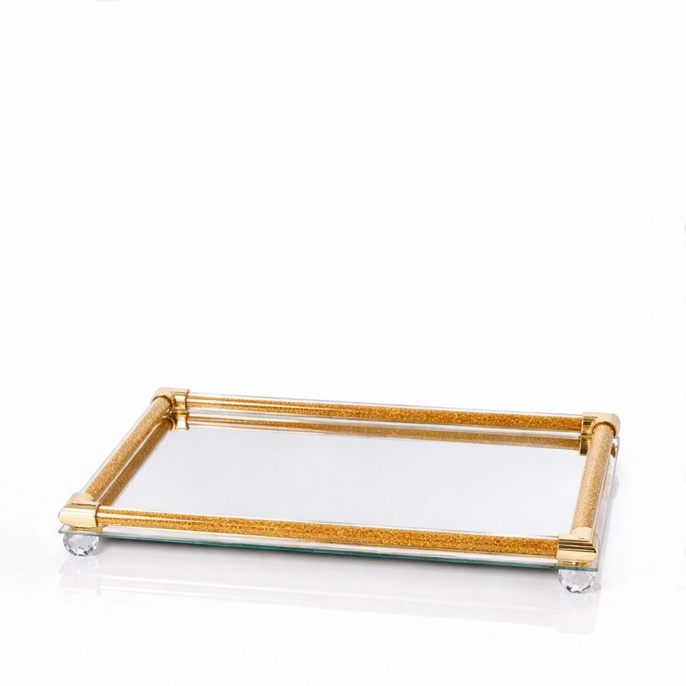 Κομψός ορθογώνιος γυάλινος δίσκος με επιφάνεια καθρέφτη, χρυσό glitter και χρυσό τελείωμα. Χαρίζει διακριτική λάμψη στη διακόσμησή σας.
