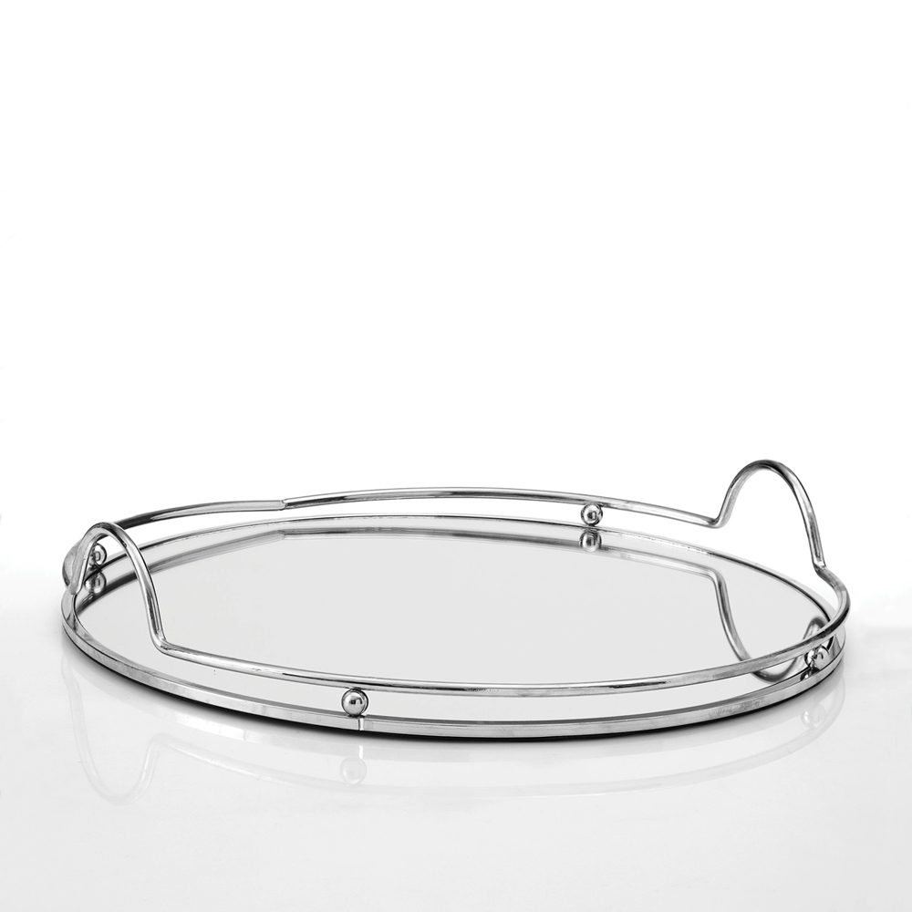 Στρογγυλός μεταλλικός ασημένιος δίσκος με καθρέφτη της Authentique Art