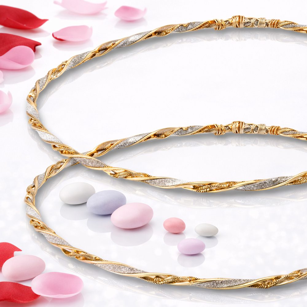 Μοναδικός Σχεδιασμός: Δύο επίχρυσες και μία επάργυρη βέργες πλεγμένες περίτεχνα, που συμβολίζουν την κοινή πορεία του ζευγαριού.