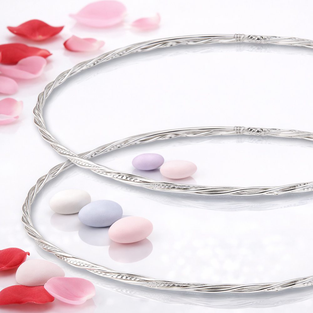 Δώστε στον γάμο σας την αίσθηση πολυτέλειας που του αξίζει. Αυτά τα χειροποίητα επάργυρα στέφανα ξεχωρίζουν για την κομψή πλέξη τριών βεργών, δημιουργώντας ένα εντυπωσιακό αποτέλεσμα υψηλής αισθητικής.