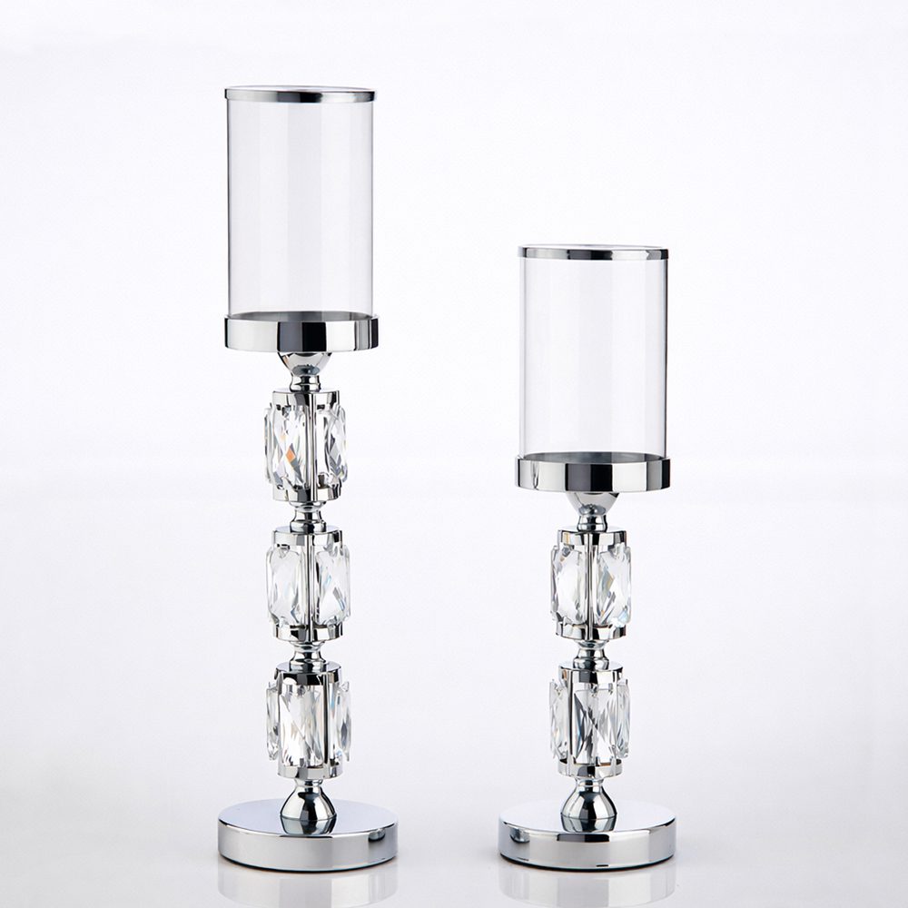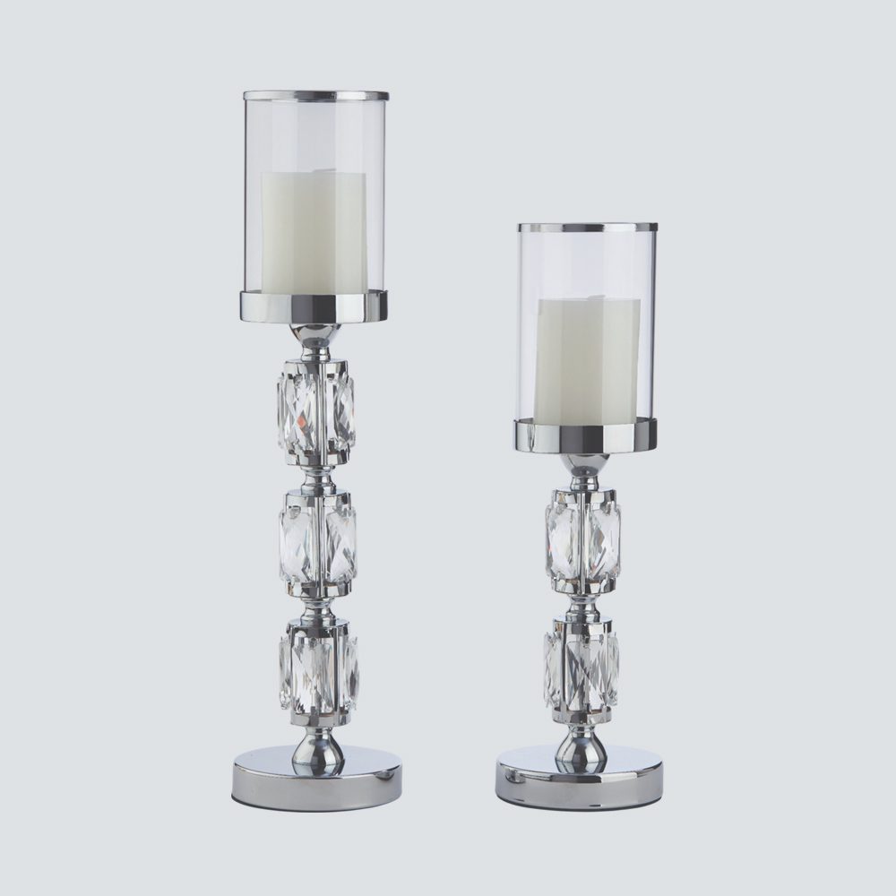 Σετ λαμπάδων γάμου της Authentique Art με κρυστάλλινα κηροπήγια, ασημένιες λεπτομέρειες και λευκά αρωματικά κεριά.