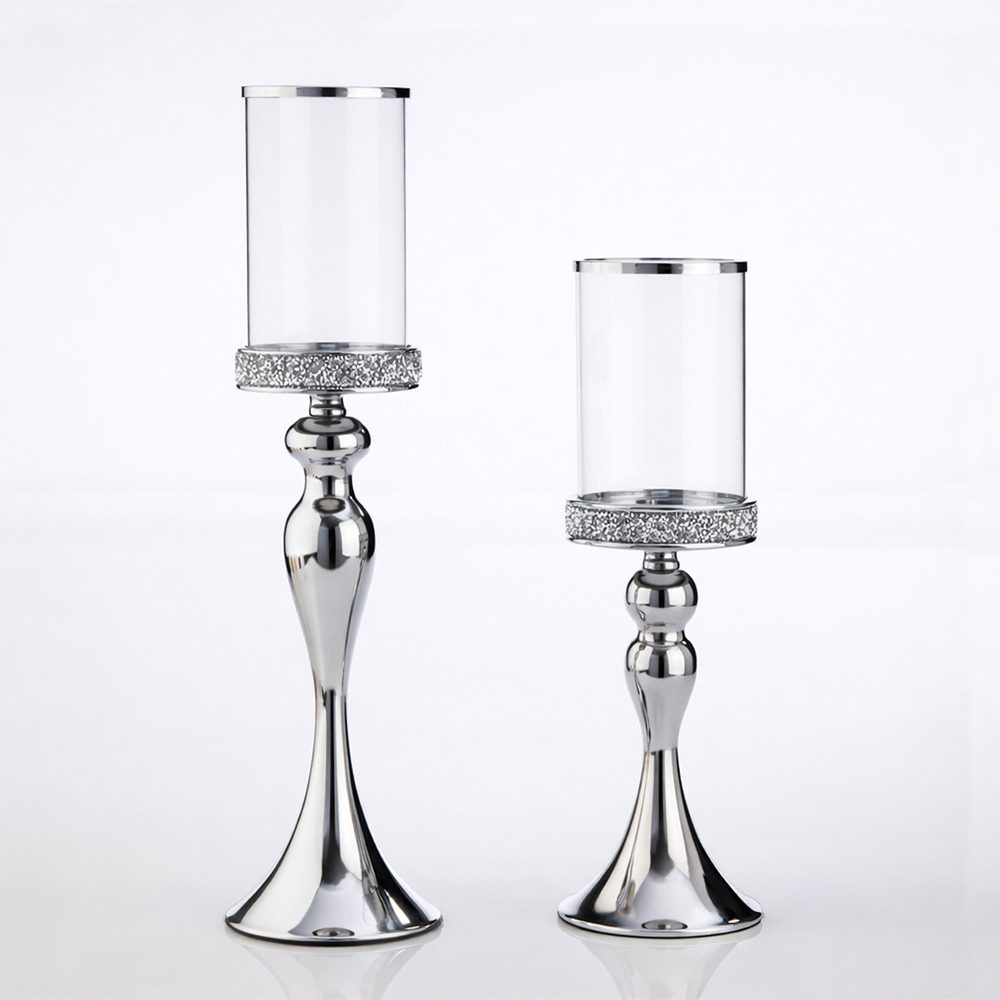 Σετ λαμπάδων γάμου της Authentique Art με κρυστάλλινα κηροπήγια, σε ασημί χρώμα και λευκά αρωματικά κεριά.