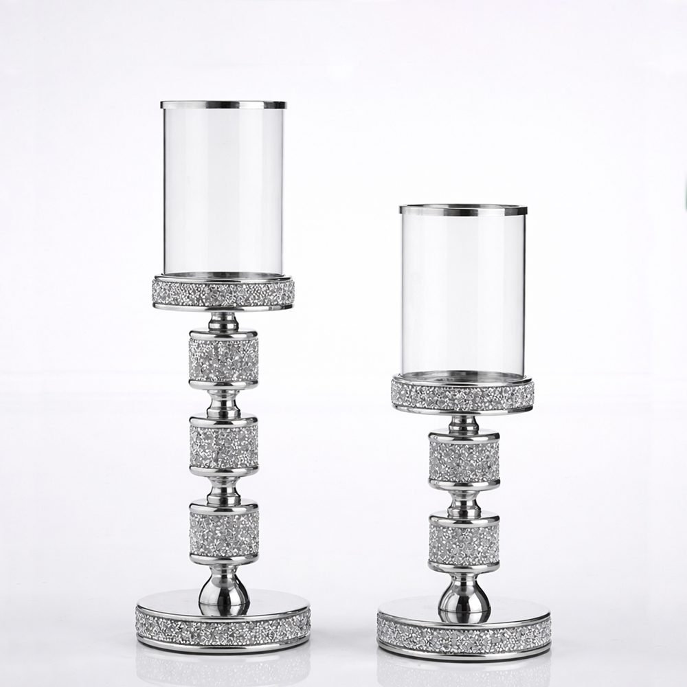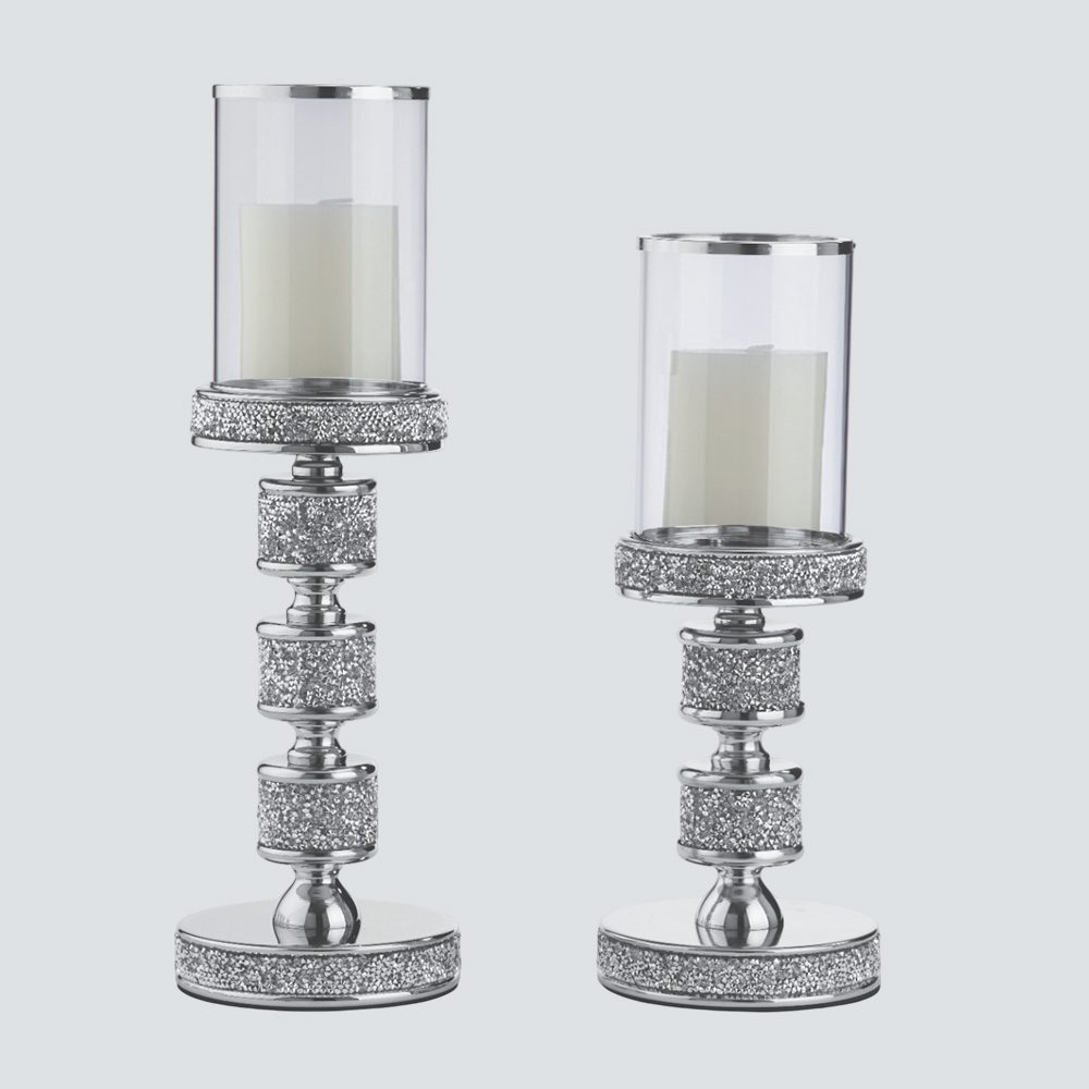 Σετ λαμπάδων γάμου της Authentique Art με κρυστάλλινα κηροπήγια, ασημένιες λεπτομέρειες και λευκά αρωματικά κεριά.