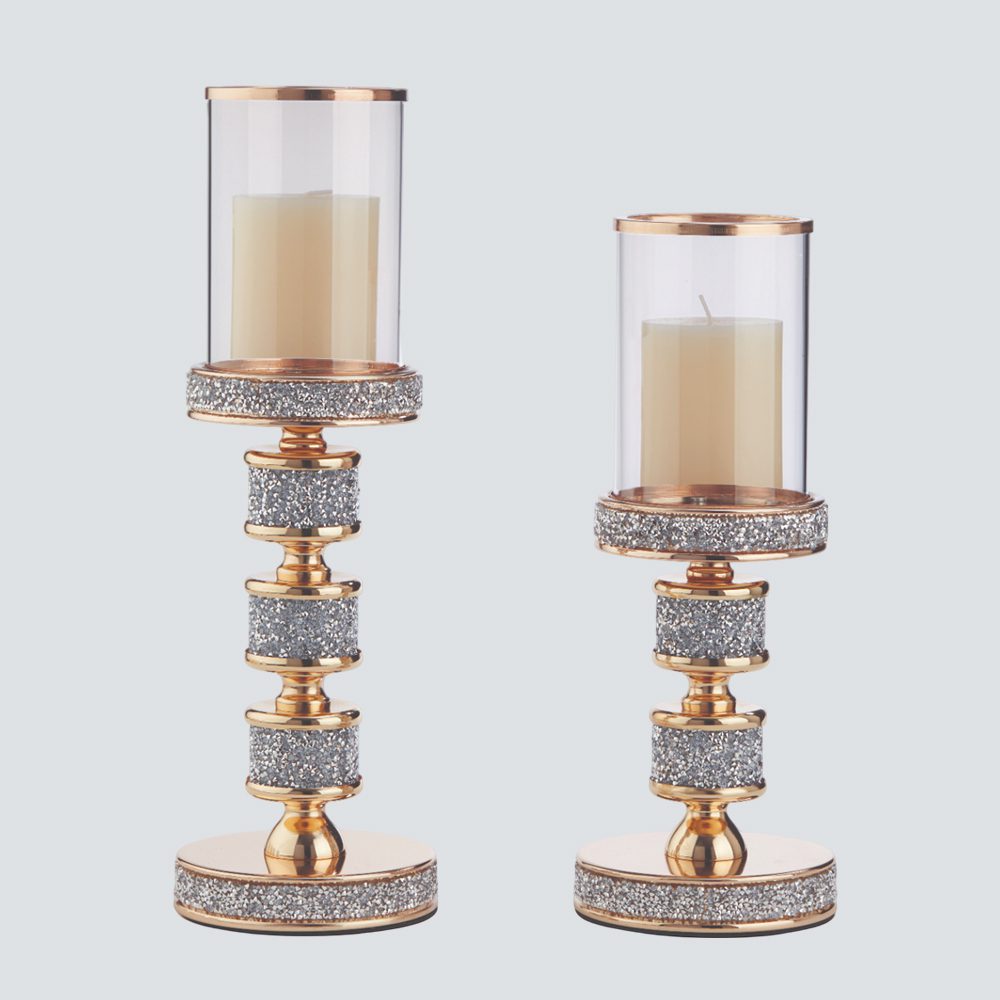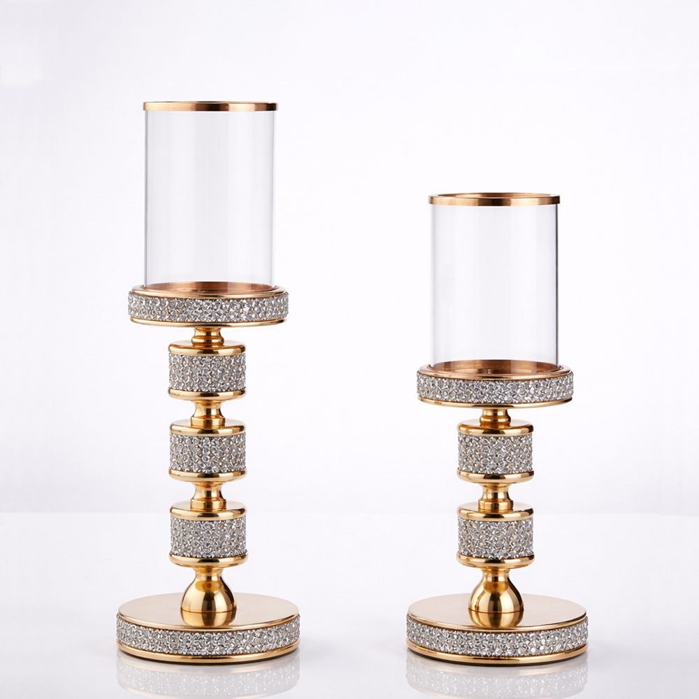 Σετ λαμπάδων γάμου της Authentique Art με κρυστάλλινα κηροπήγια, χρυσές λεπτομέρειες και λευκά αρωματικά κεριά.