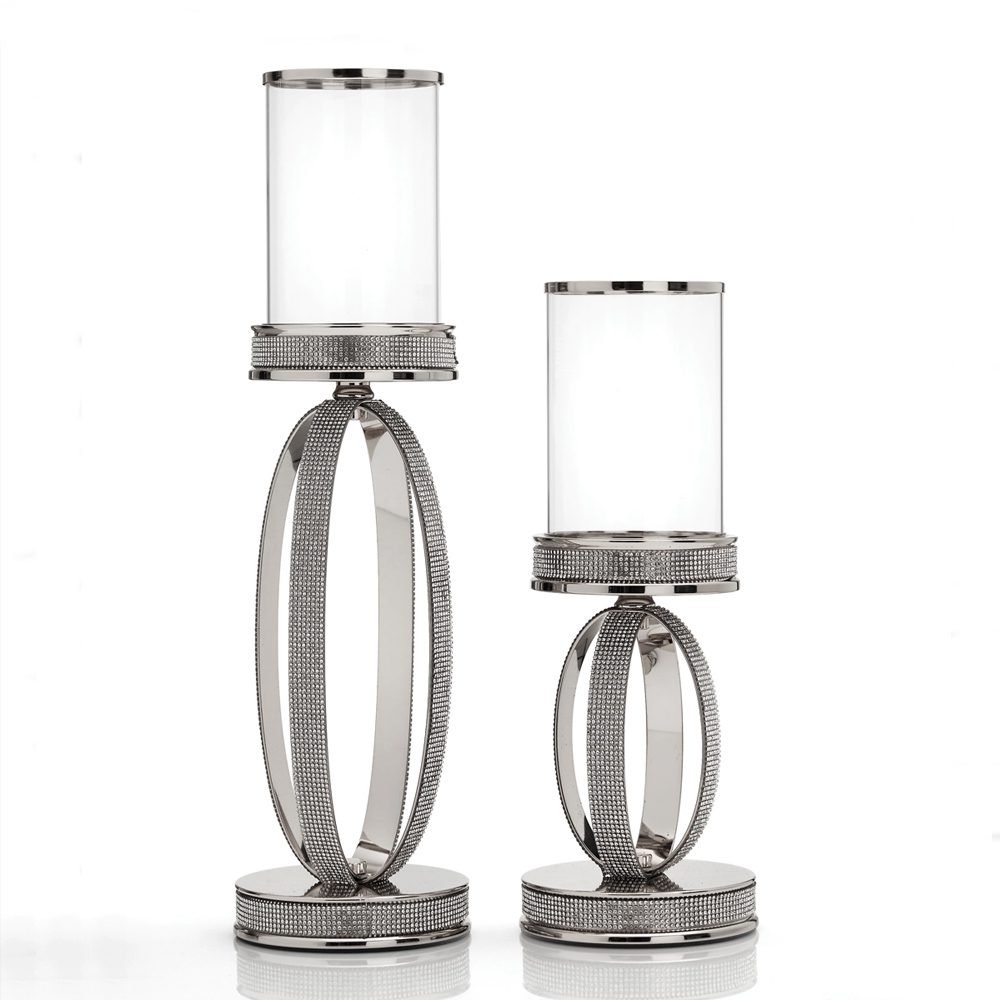 Σετ λαμπάδων γάμου της Authentique Art με κρυστάλλινα κηροπήγια, ασημένιες λεπτομέρειες και λευκά αρωματικά κεριά.
