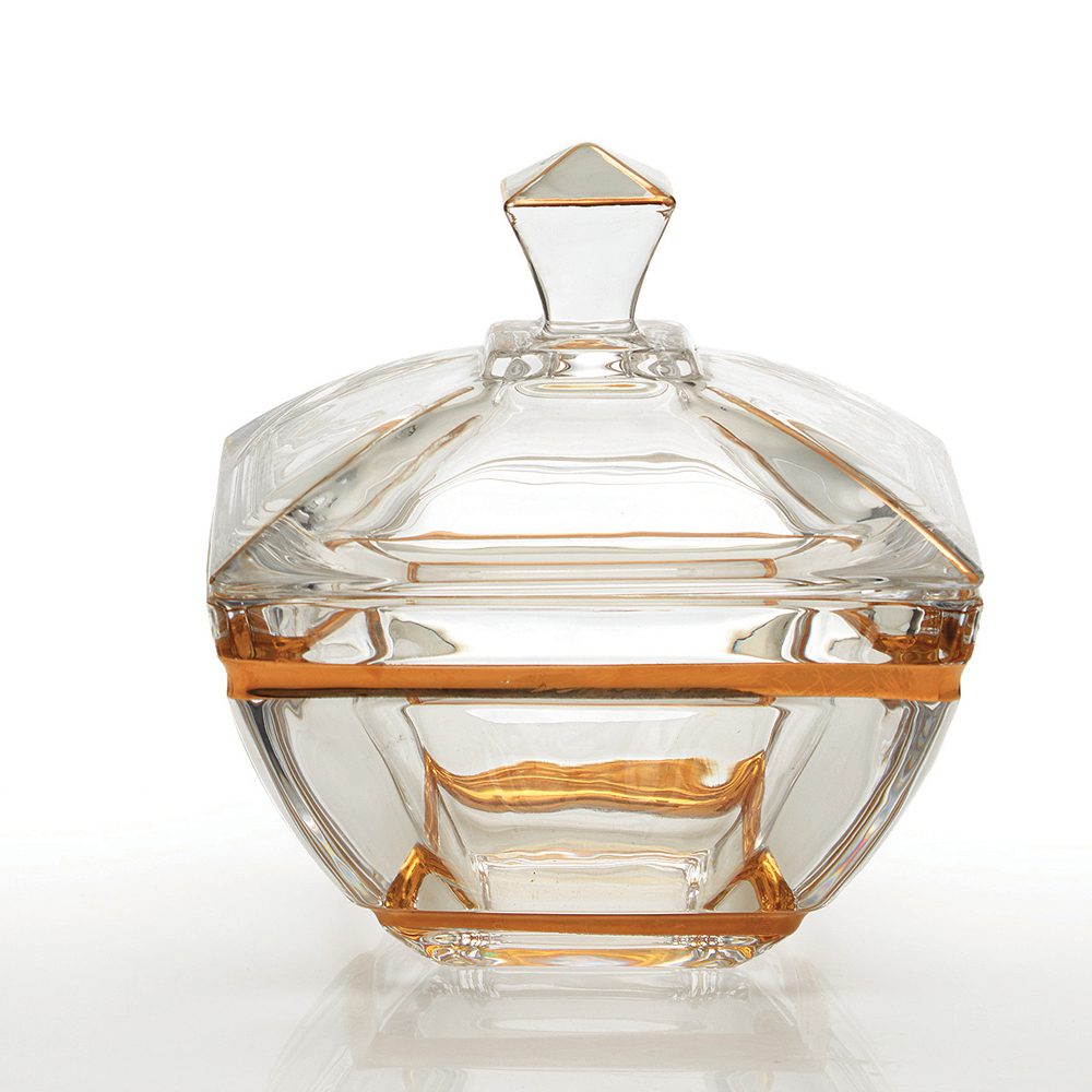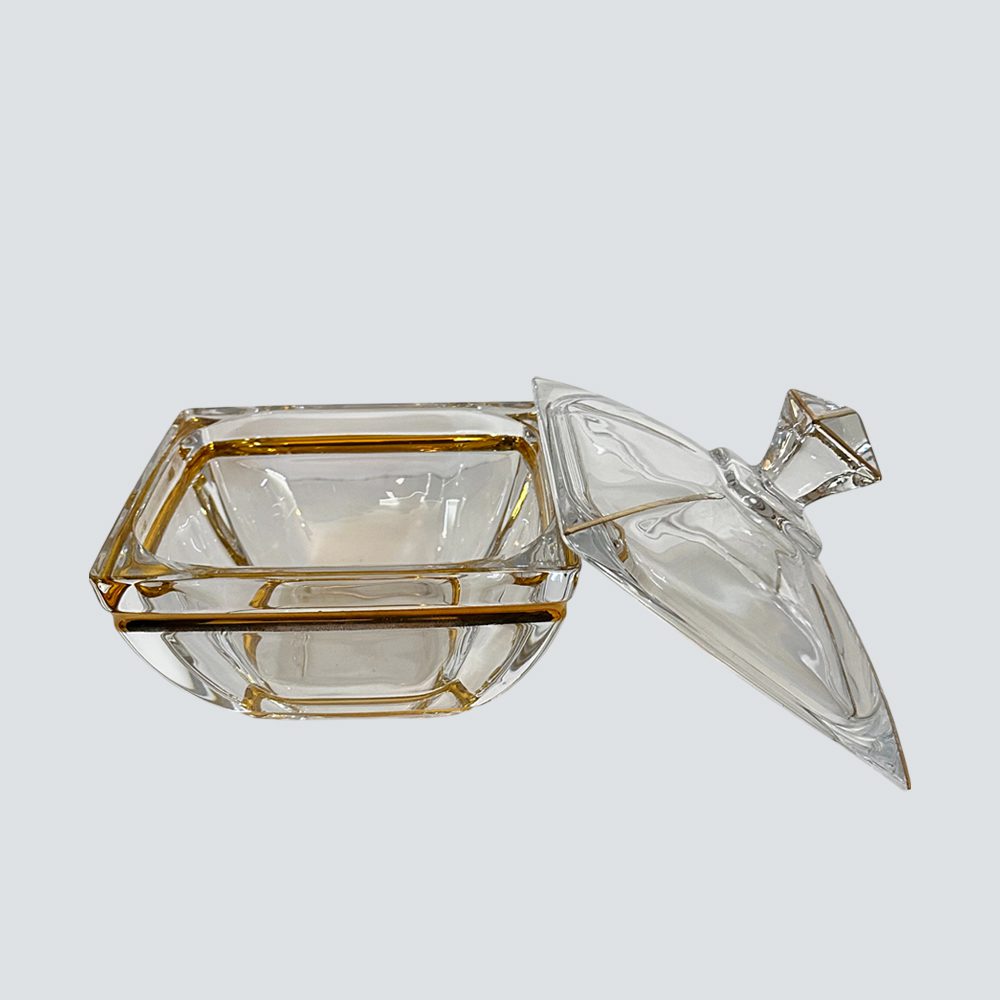Αναδείξτε τα αγαπημένα σας γλυκά με αυτή τη κρυστάλλινη μελιέρα – φοντανιέρα με χρυσές λεπτομέρειες. Το καθαρό κρύσταλλο και οι κομψές χρυσές γραμμές δημιουργούν μια διακριτική πολυτέλεια που ταιριάζει σε κάθε χώρο. Η στιβαρή κατασκευή και το καπάκι διατηρούν το περιεχόμενο φρέσκο, ενώ η χωρητικότητά της την καθιστά ιδανική για μέλι, κουφέτα ή σοκολατένιες λιχουδιές. Μια πρακτική και διακοσμητική επιλογή που χαρίζει κομψότητα στο τραπέζι σας. Ιδανική για το σπίτι αλλά και ως ξεχωριστό δώρο για όσους αγαπούν τα εκλεκτά αντικείμενα.