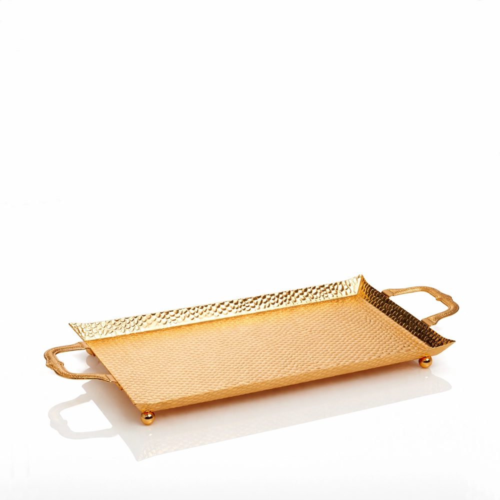 Κομψός ορθογώνιος μεταλλικός δίσκος σε χρυσή απόχρωση. Χαρίζει διακριτική λάμψη στη διακόσμησή σας.