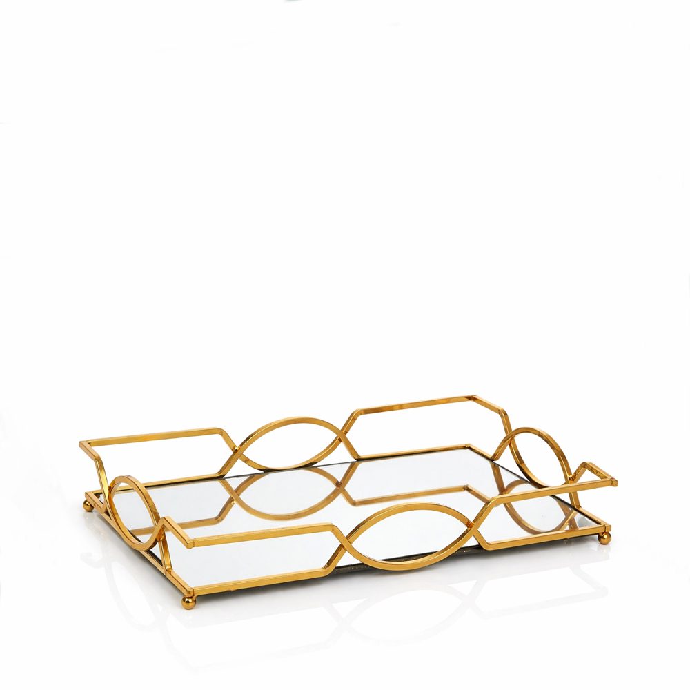 Ορθογώνιος μεταλλικός χρυσός δίσκος με καθρέφτη της Authentique Art