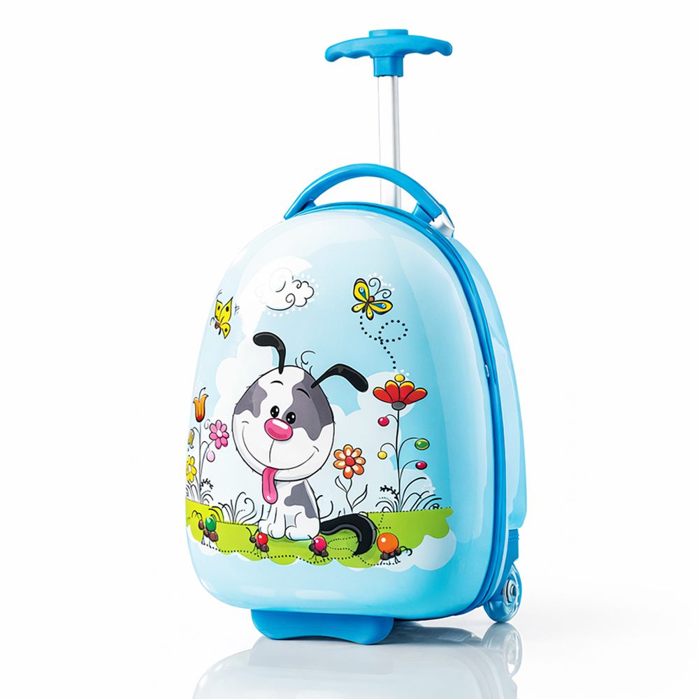 Παιδική βαλίτσα καμπίνας σε γαλάζιο χρώμα με τυπωμένο σχέδιο σκυλάκι. Διαθέτει σκληρή και ανθεκτική κατασκευή και είναι ιδανική για χρήση ως χειραποσκευή καμπίνας σε ταξίδια.