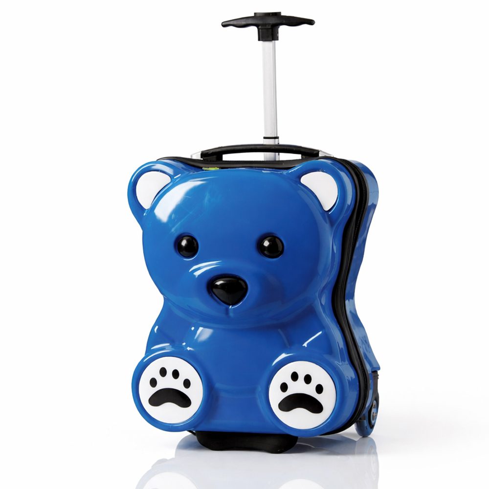 Παιδική βαλίτσα καμπίνας σε μπλε χρώμα με χαριτωμένο σχέδιο αρκουδάκι. Διαθέτει σκληρή και ανθεκτική κατασκευή και είναι ιδανική για χρήση ως χειραποσκευή καμπίνας σε ταξίδια.