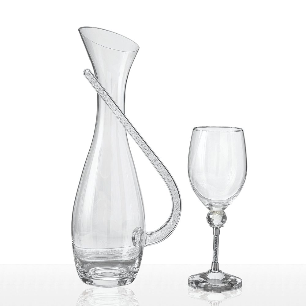 Αναδείξτε την πιο ξεχωριστή σας στιγμή με το πολυτελές κρυστάλλινο σετ καράφας και ποτηριού, διακοσμημένο με ασημένιο glitter.