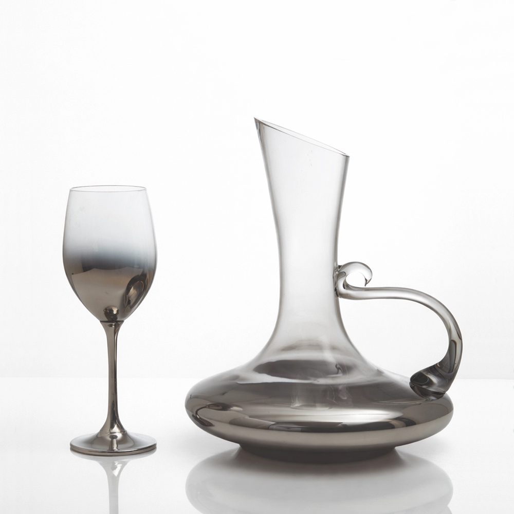 Αναδείξτε την πιο ξεχωριστή σας στιγμή με το πολυτελές κρυστάλλινο σετ καράφας και ποτηριού σε ασημί χρώμα.
