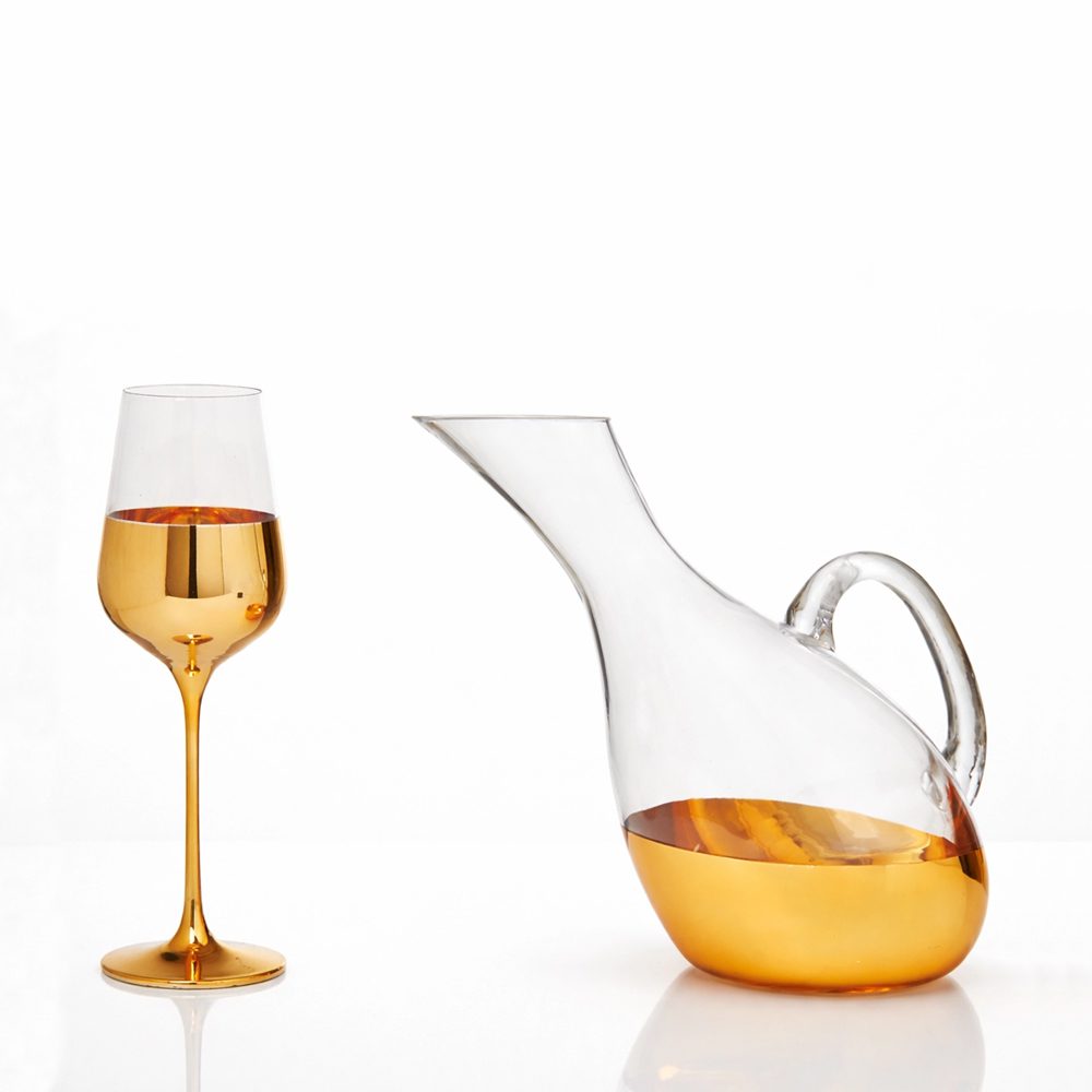 Αναδείξτε τις πιο ξεχωριστές σας στιγμές με το πολυτελές κρυστάλλινο σετ καράφας και ποτηριού με χρυσή μεταλλική επικάλυψη.