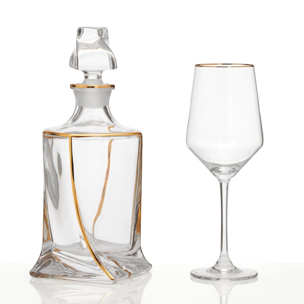 Αναδείξτε την πιο ξεχωριστή σας στιγμή με το πολυτελές κρυστάλλινο σετ καράφας και ποτηριού, διακοσμημένο με λαμπερές χρυσές λεπτομέρειες.