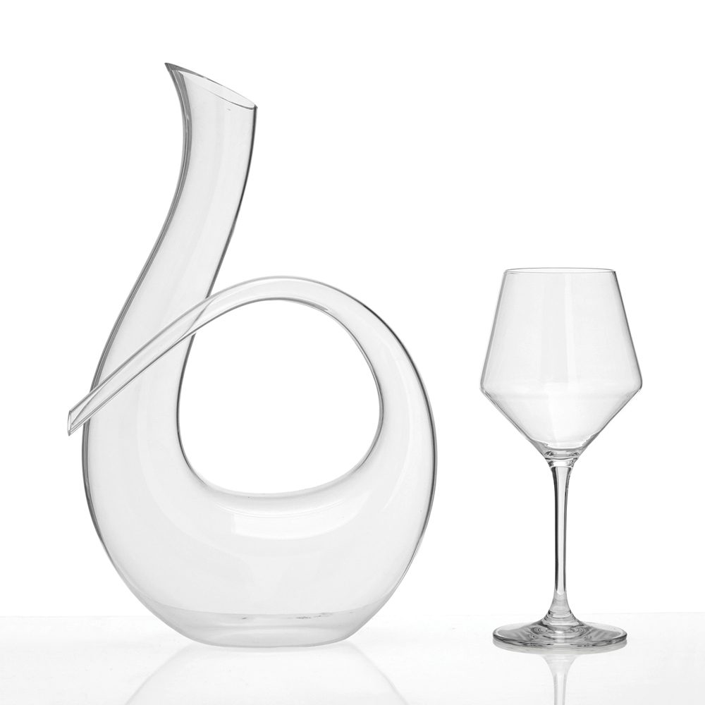 Η καράφα με τον καμπύλο, μοντέρνο σχεδιασμό εξασφαλίζει ιδανικό αερισμό του κρασιού.