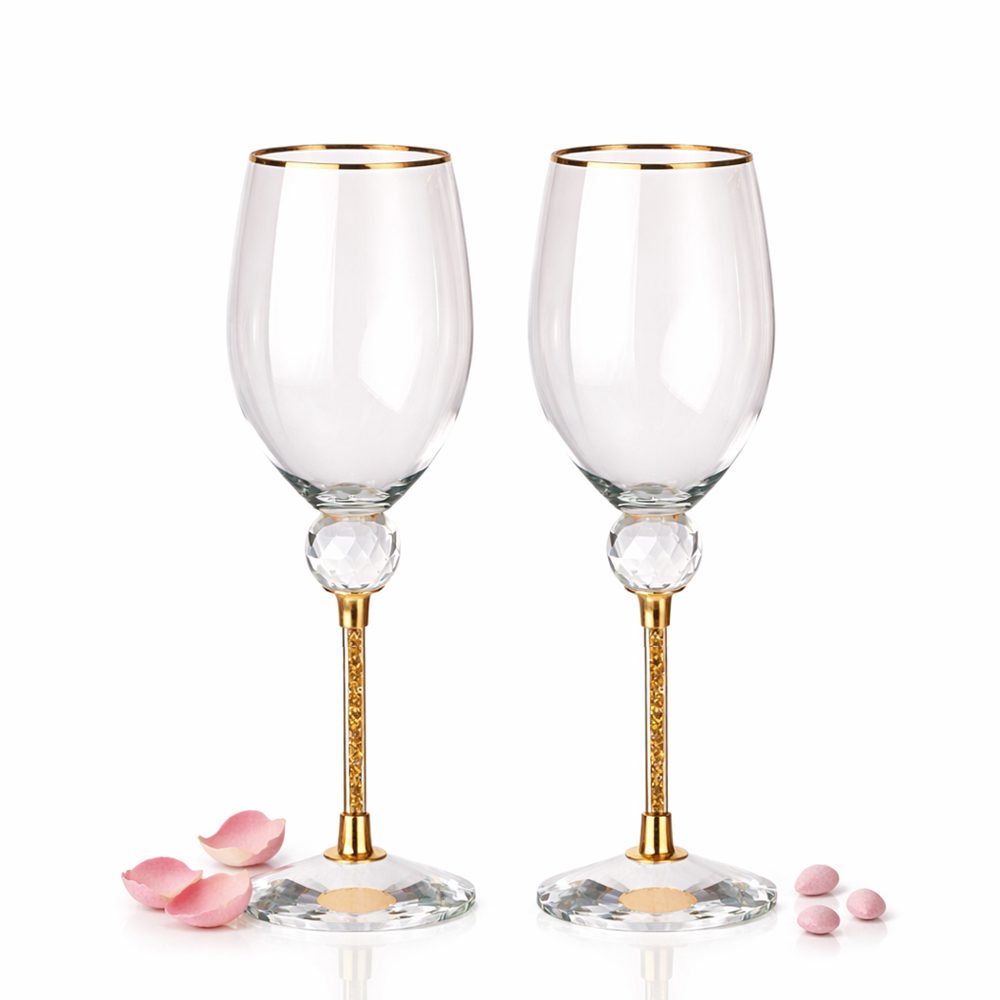 Σετ κρυστάλλινα ποτήρια κρασιού γάμου της Authentique Art, σχεδιασμένα για να προσθέτουν λάμψη και διακριτική πολυτέλεια στις πιο όμορφες στιγμές σας.