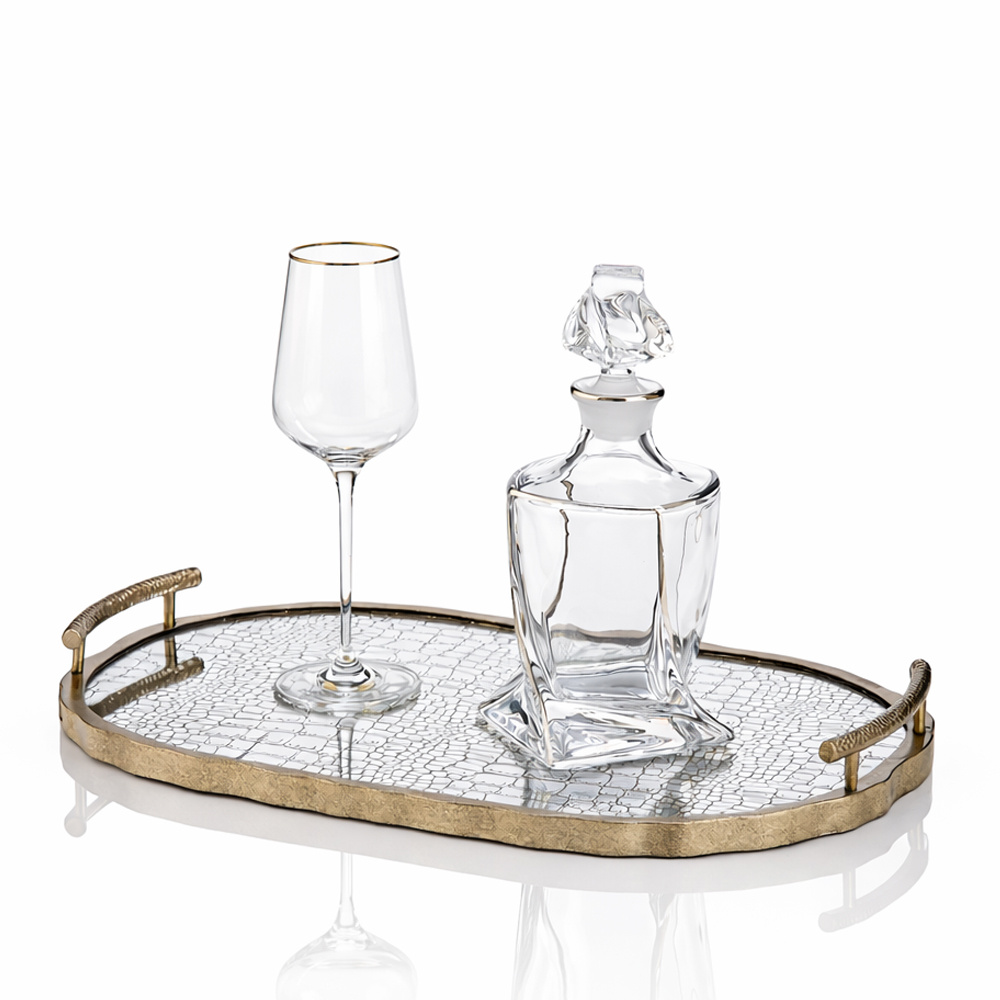 Οβάλ δίσκο με καθρέπτη print, διαστάσεων (47,5×30,5x5cm), ιδανικό για το μυστήριο και τη διακόσμηση.