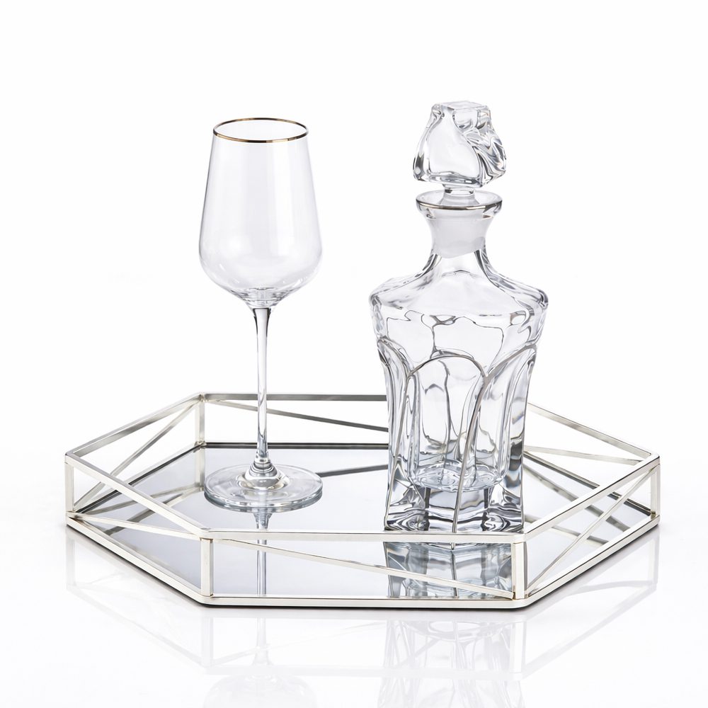 Ασημένιο εξάγωνο δίσκο με καθρέπτη, διαστάσεων (35x30x5cm), ιδανικό για το μυστήριο και τη διακόσμηση.