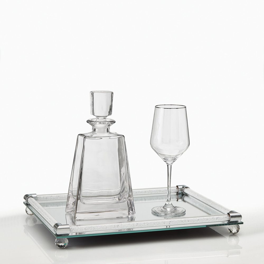 Σετ δίσκος με ποτήρι κρασιού και καράφα κρυστάλλινα της Authentique Art