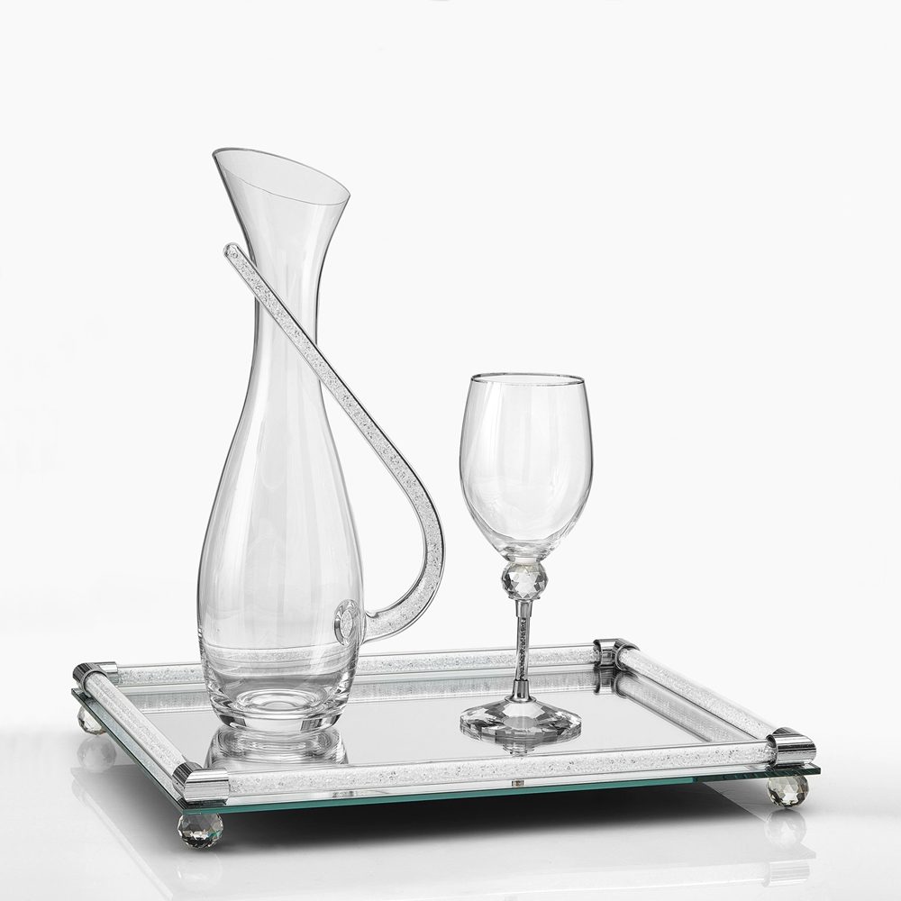 Σετ δίσκος με ποτήρι κρασιού και καράφα κρυστάλλινα της Authentique Art