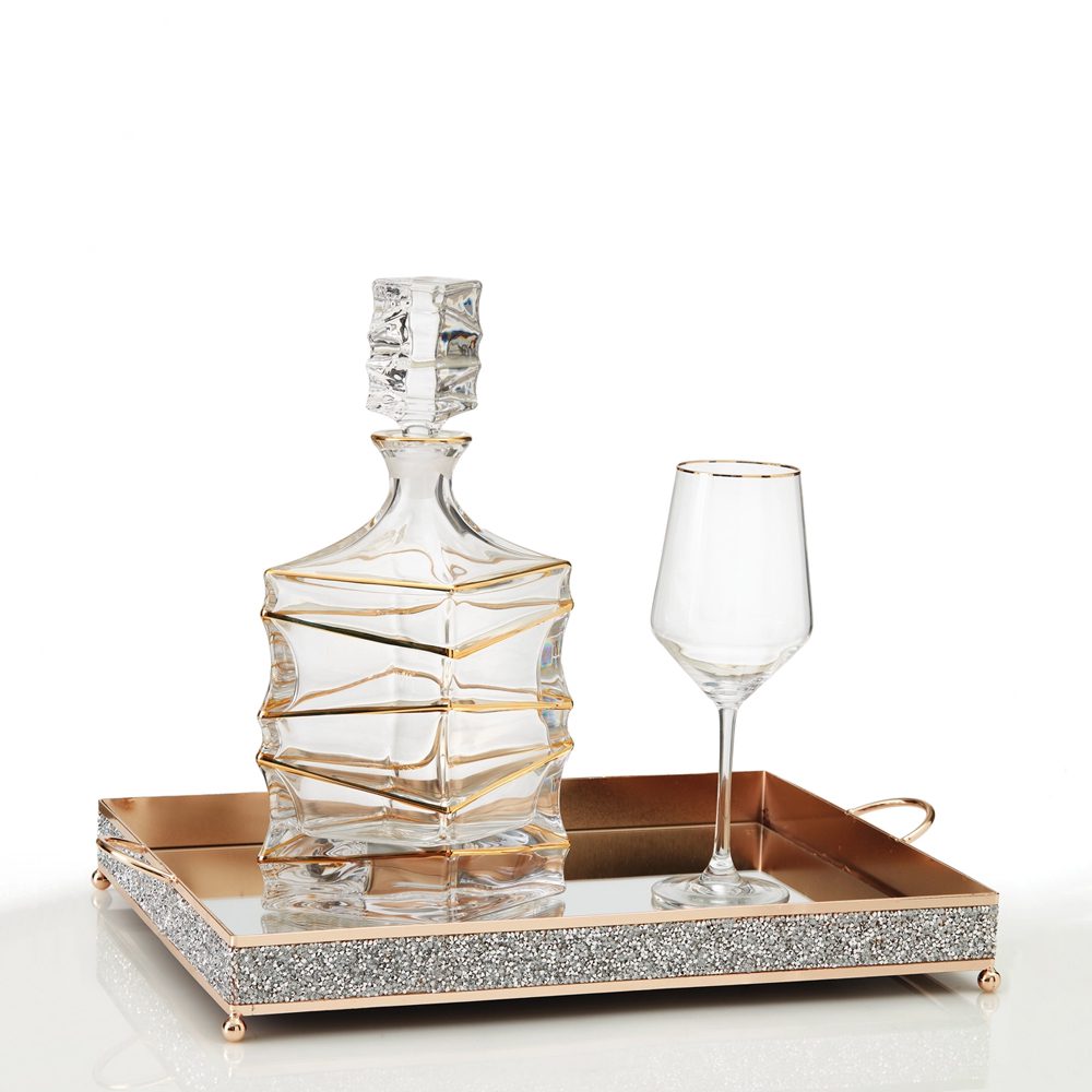 Κρυστάλλινη καράφα με χρυσή λεπτομέρεια, διαστάσεων (29x10cm).
