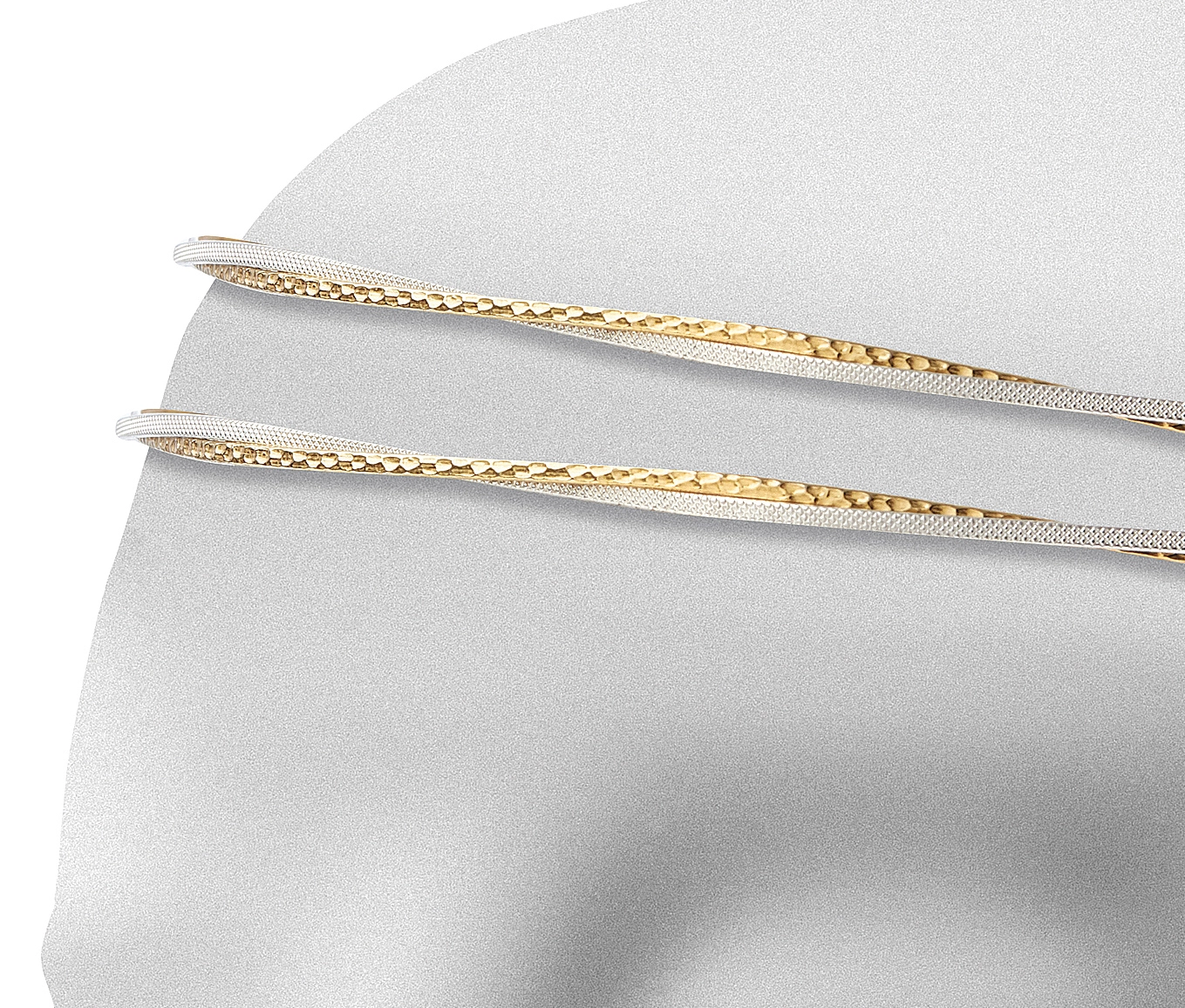 Ο κομψός συνδυασμός δύο βεργών μιας χρυσής και μίας ασημένιας πλεγμένες μεταξύ τους, προσφέρουν μια φανταστική εμφάνιση.