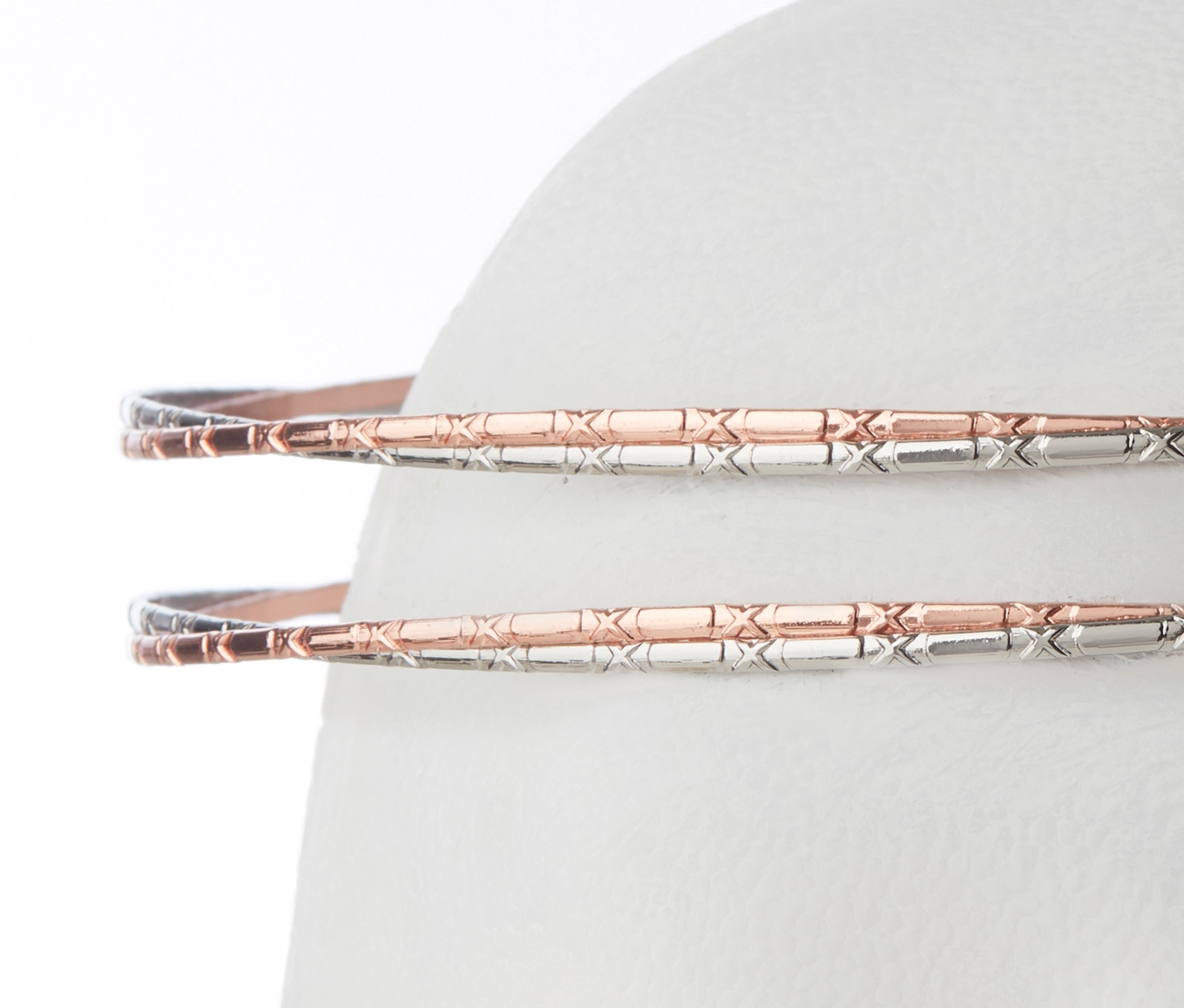 Μοναδικός Σχεδιασμός: Μία επάργυρη και μία ροζ χρυσή βέργες πλεγμένες περίτεχνα, που συμβολίζουν την κοινή πορεία του ζευγαριού.