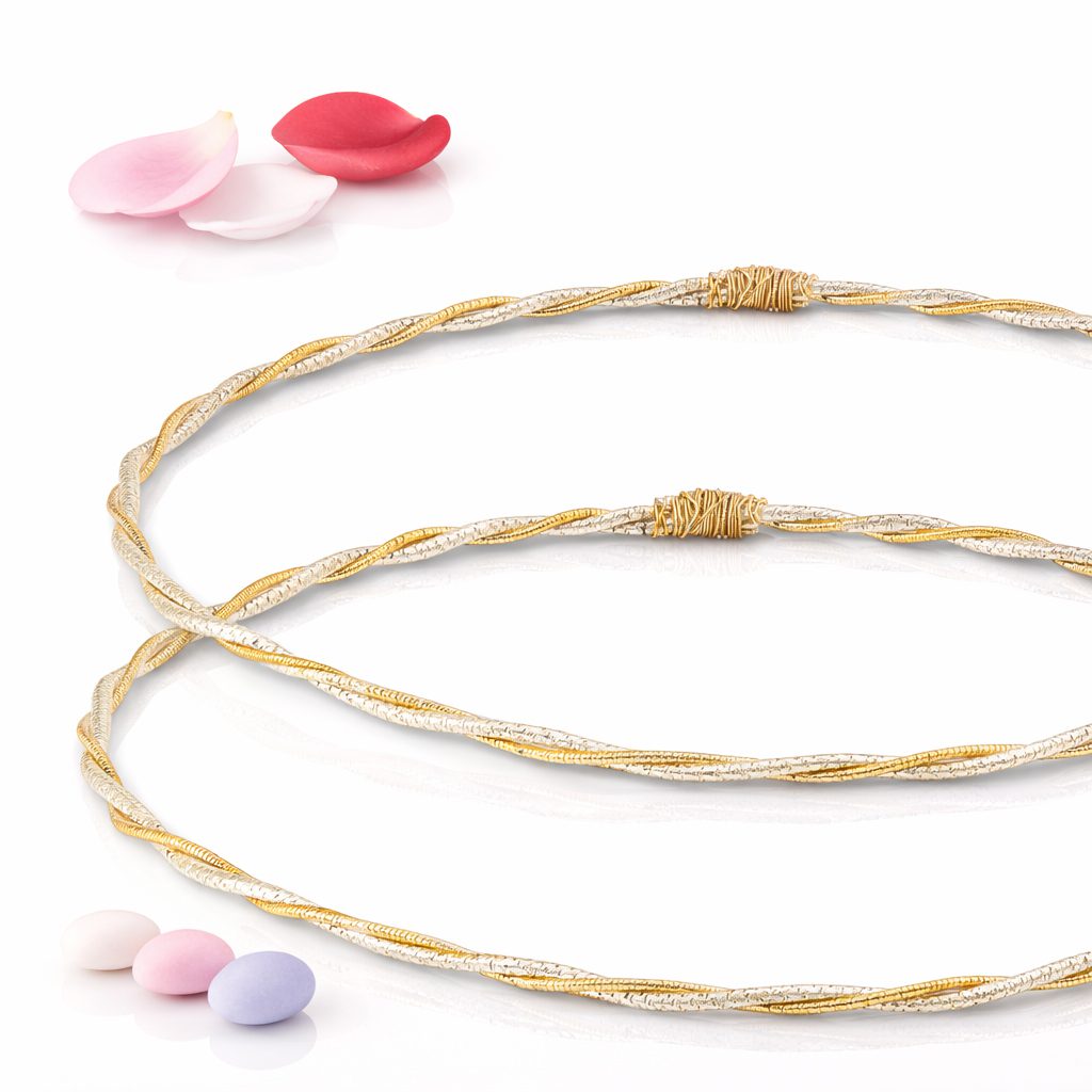 Μοναδικός Σχεδιασμός: Μία επάργυρη και μία επίχρυση βέργες πλεγμένες περίτεχνα, που συμβολίζουν την κοινή πορεία του ζευγαριού.
